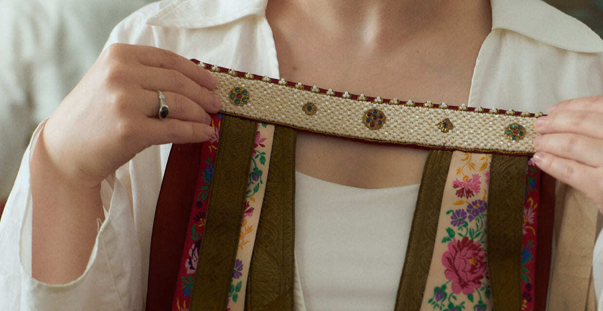 Ожерелок — традиционное украшение, бытовавшее в XVIII-XIX веках в серверных губерниях, собранное из множества расшитых жемчугом деталей. Дополненный роскошными фестонами и на выбор стразами или камнями Ожерелок станет прекрасным украшением гардероба.